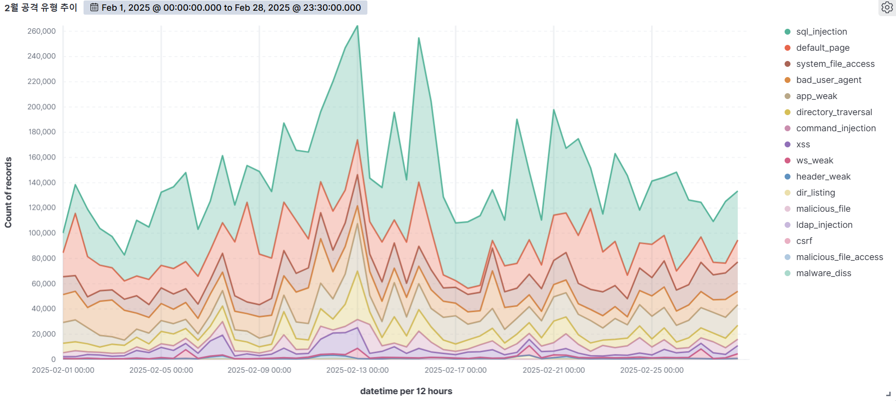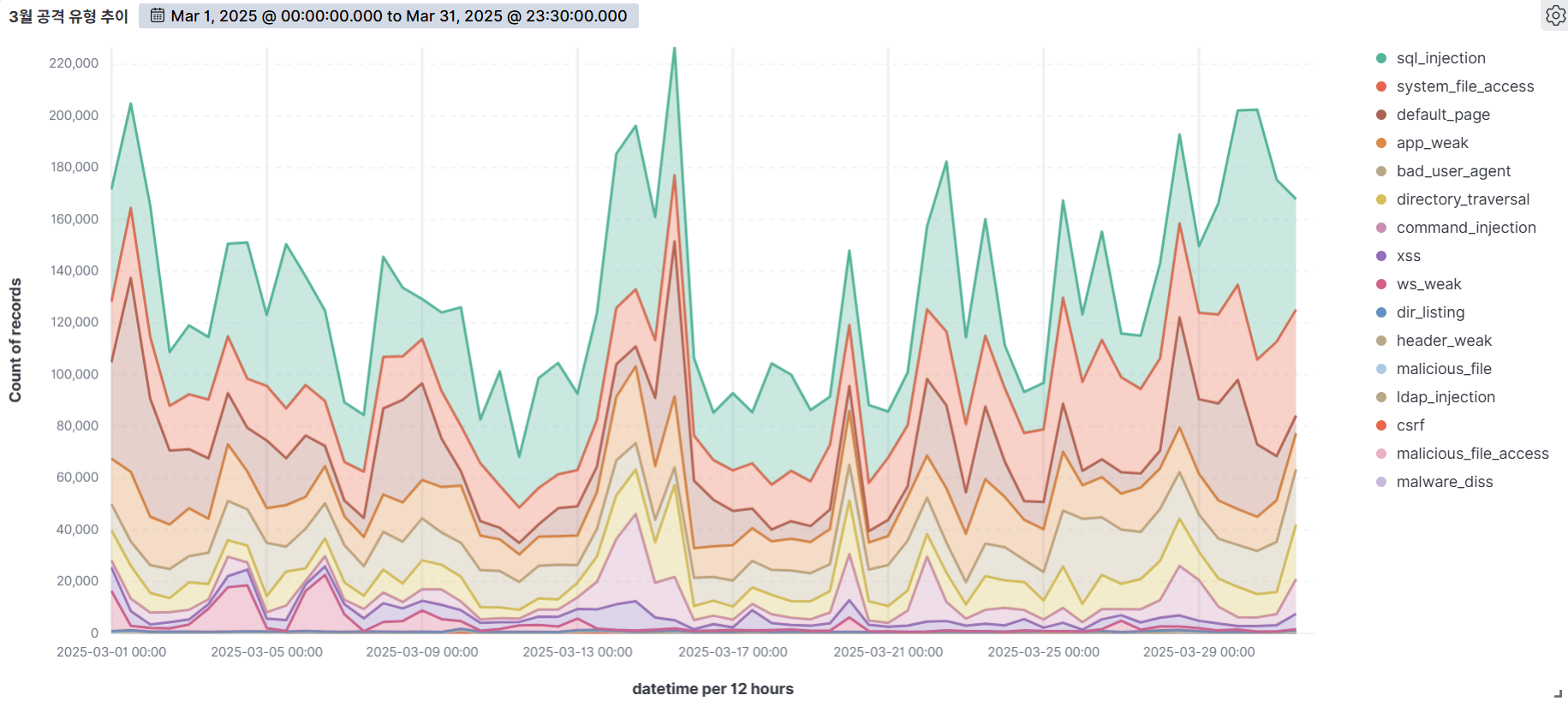By analyzing web attack trends by attack type based on detection logs, you can systematically identify which types of attacks are most frequent over the course of a month. This analysis is more than just a statistic; it is a key reference point for refining your organization's security policy and response.