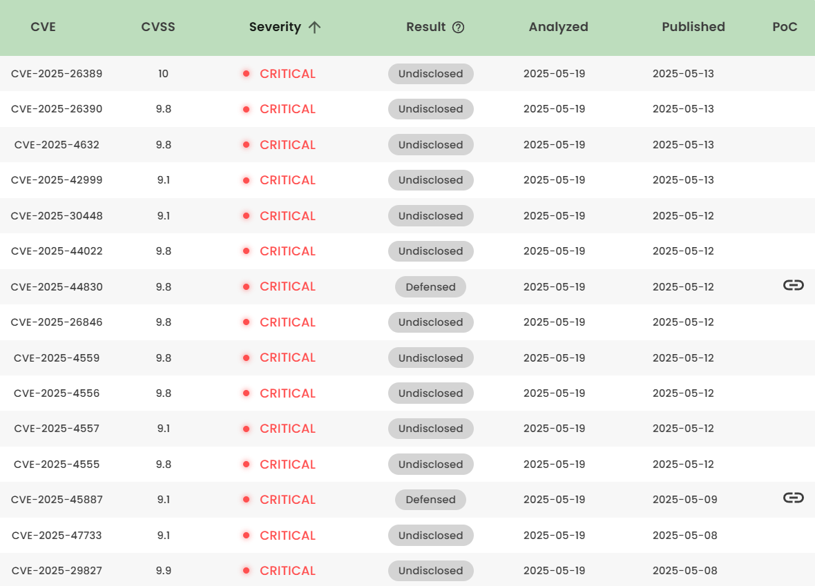 A. High-risk vulnerability status (2025.05)
