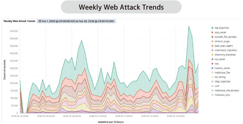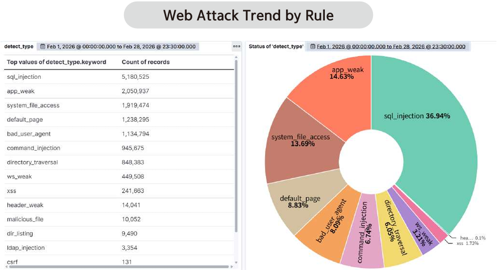 According to statistics on web attack types detected by AIWAAP in February 2026, SQL Injection accounted