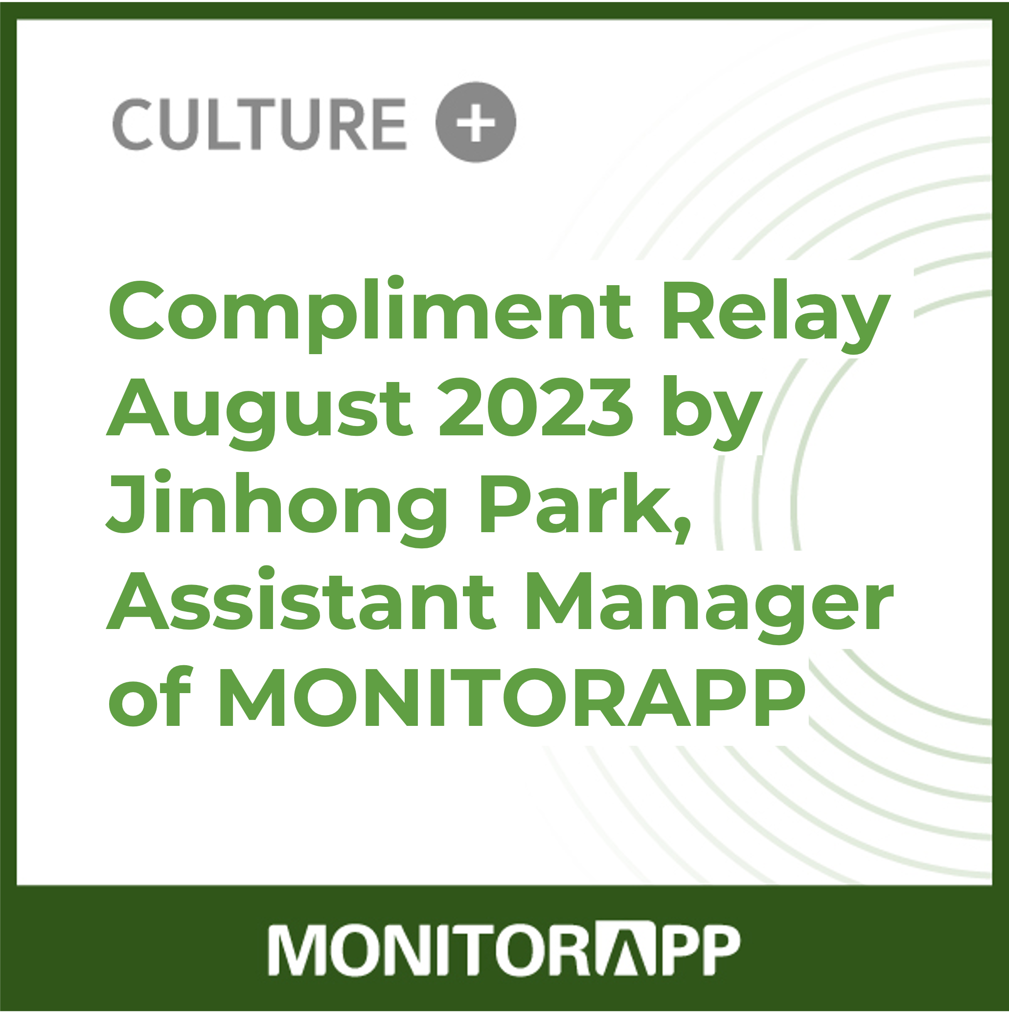 Our August compliment relay runner is. Jinhong Park, assistant manager of the Technical Support Team at the Product Management Headquarters.